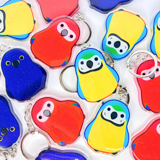 Macaw Parrot acrylic charm | Cartoon Cute Kawaii Chibi Style Birb Art